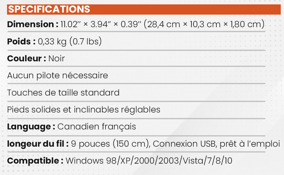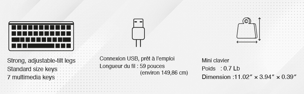 Le clavier est léger avec une élévation d’environ 1 demi pouce pour une utilisation naturelle et normale. Ce mini-clavier incorpore des clefs de fonction pour en diminuer et limiter l’amplitude des mouvements des mains lors de d’utilisation de la souris. Pensé et conçu par l’équipe IntekView. De plus, vous avez 7 touches multimédias pour vous simplifier la vie. Ce clavier a tout ce que vous avez besoin pour un maximum de confort.