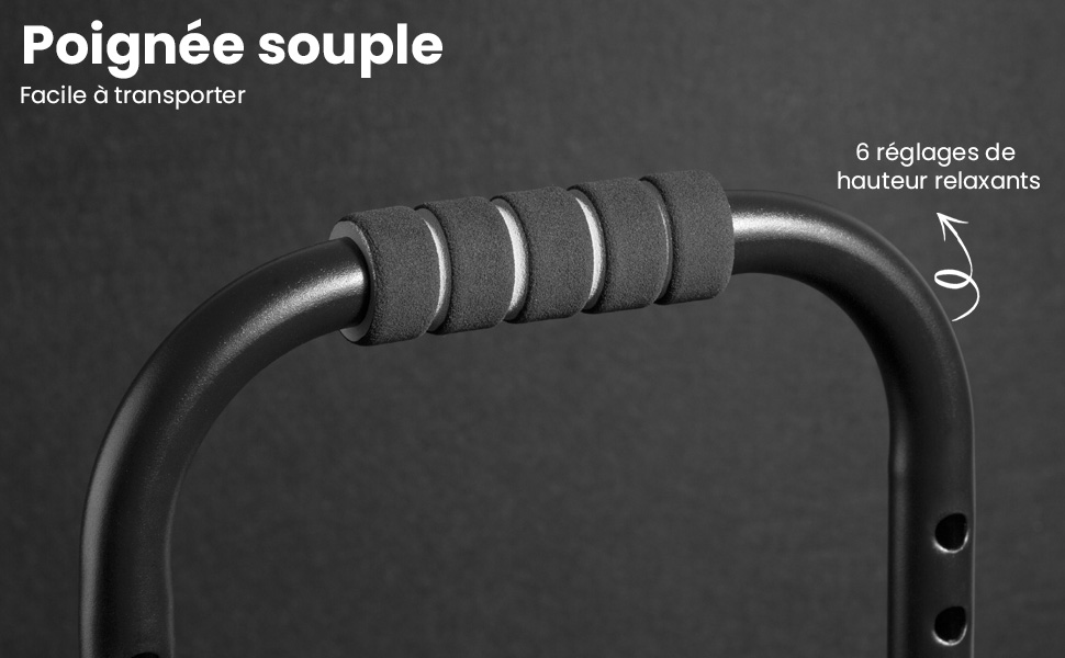 • Construction entièrement en acier : maintient fermement le poids que vous mettez sur le repose-pieds. Poignée à prise souple : facile à transporter.