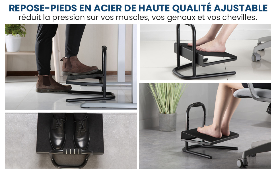 • Construction entièrement en acier : maintient fermement le poids que vous mettez sur le repose-pieds.