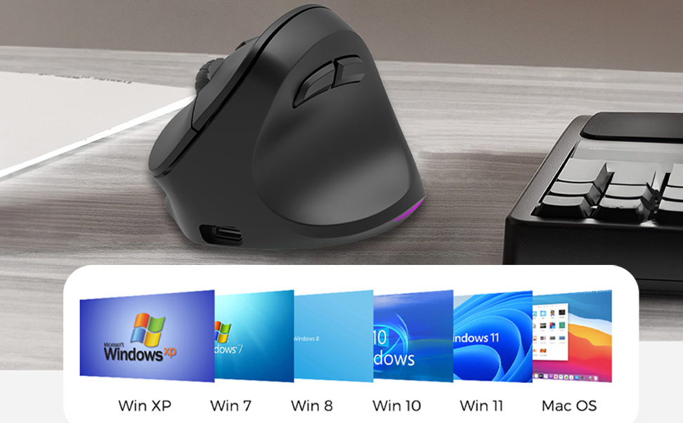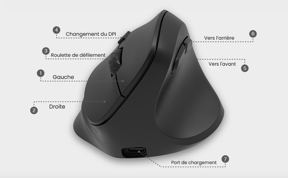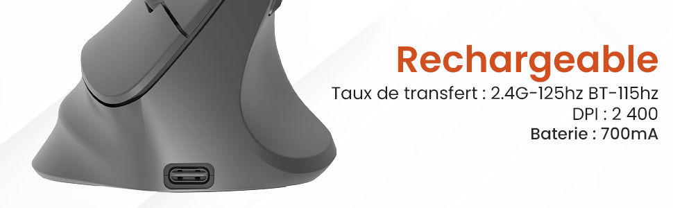 - Design vertical ergonomique : Réduit les douleurs au poignet et améliore le confort d’utilisation.