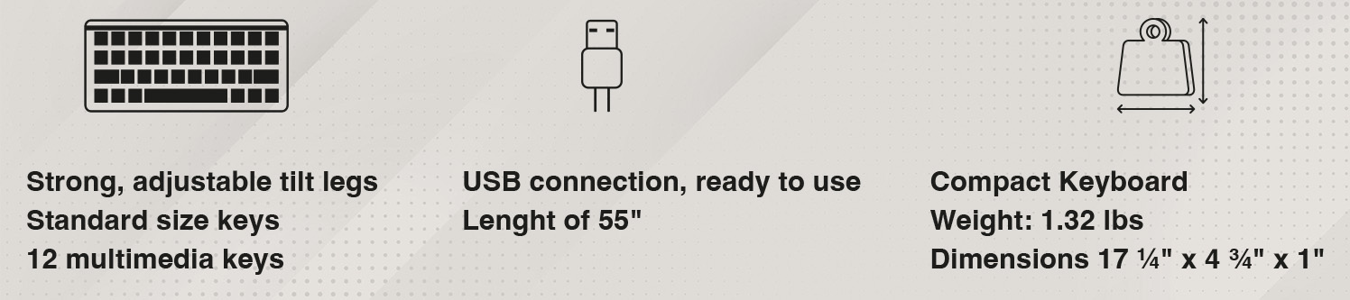 • Number of keys: Full-size keys with 12 multimedia shortcuts